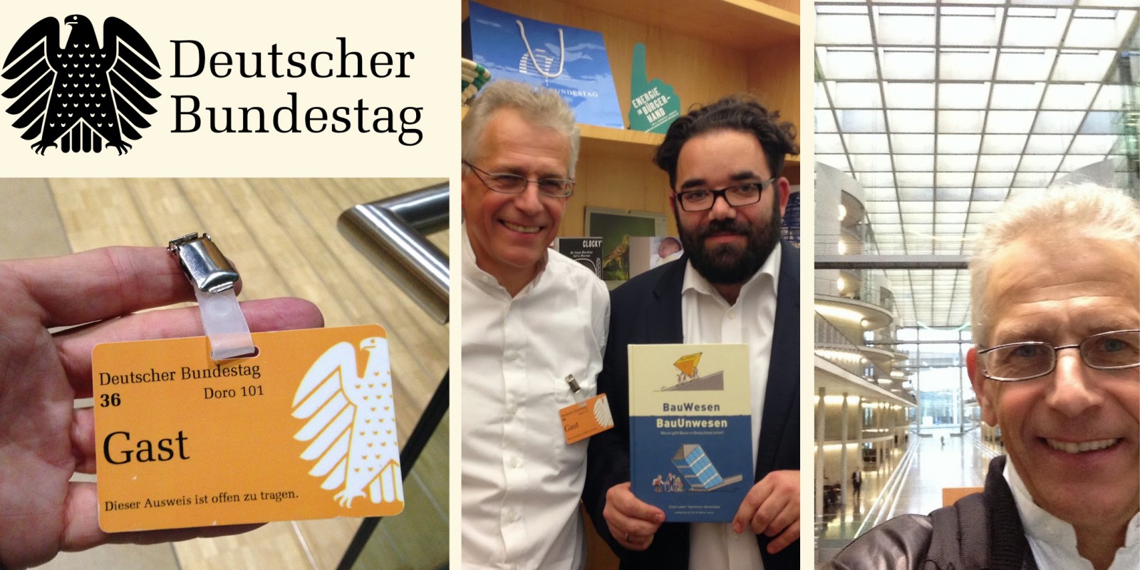 Das Interesse am Thema BauWesen / BauUnwesen ist bei den Grünen spürbar gross. Die kleinen Opposition im Deutschen Bundestag scheint jedoch durch die enorm Grosse Koalition förmlich mit dicken Dossiers und Meetings ertränkt zu werden. Da bleibt wenig Freiraum, auf zusätzlichen Themenfelder zu agieren. Aber ich bin nach dem Besuch sicher, dass Die Grünen mein Engagement gegen das Deutsche BauUnwesen unterstützen werden. Das oben stehende Foto ist auf Vorschlag des Abgeordneten entstanden Vielleicht „outet“ sich bald auch ein MDB der Groko als Gegner des BauUnwesens.